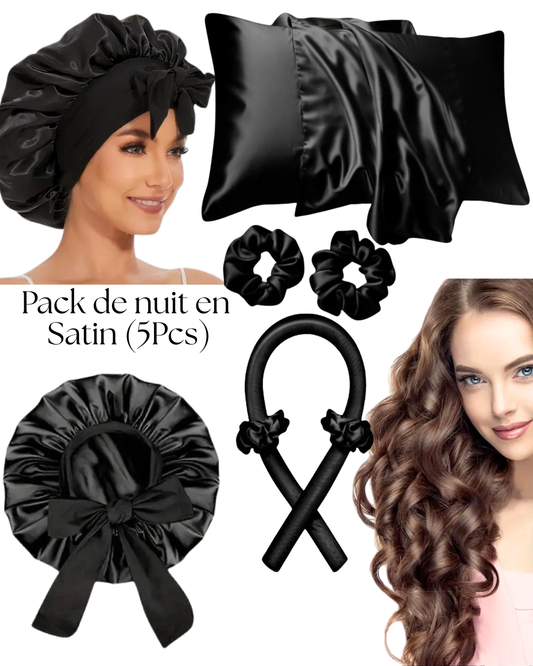 Pack de nuit en Satin (Bonnet + 02 Chouchous +Taie d'oreiller+ Boucleur )